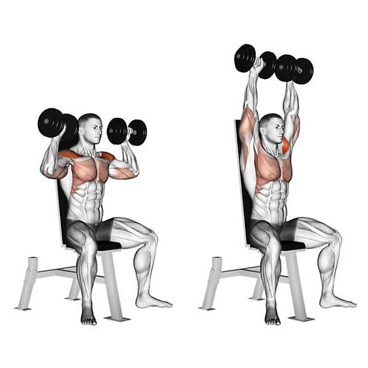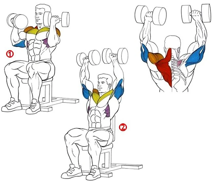 Передние дельты | Сгибание/подъем плеча вперед | Жим над головой от груди; Жим сидя; Жим Арнольда; Подъем гантелей перед собой |