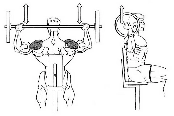 Эти занятия особенно эффективны и результативны для тех, кто хочет нарастить массу дельты. Основную нагрузку берут передние и боковые зоны дельтовидных мышц. Техника выполнения включает пять основных последовательных действий: