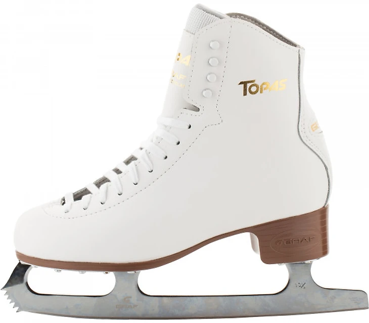 Коньки Graf Topas для фигуристов начального уровня. Ботинок средней жесткости изготовлен из натуральной кожи. Мягкий и воздухопроницаемый внутренний материал обеспечивает комфорт при катании.