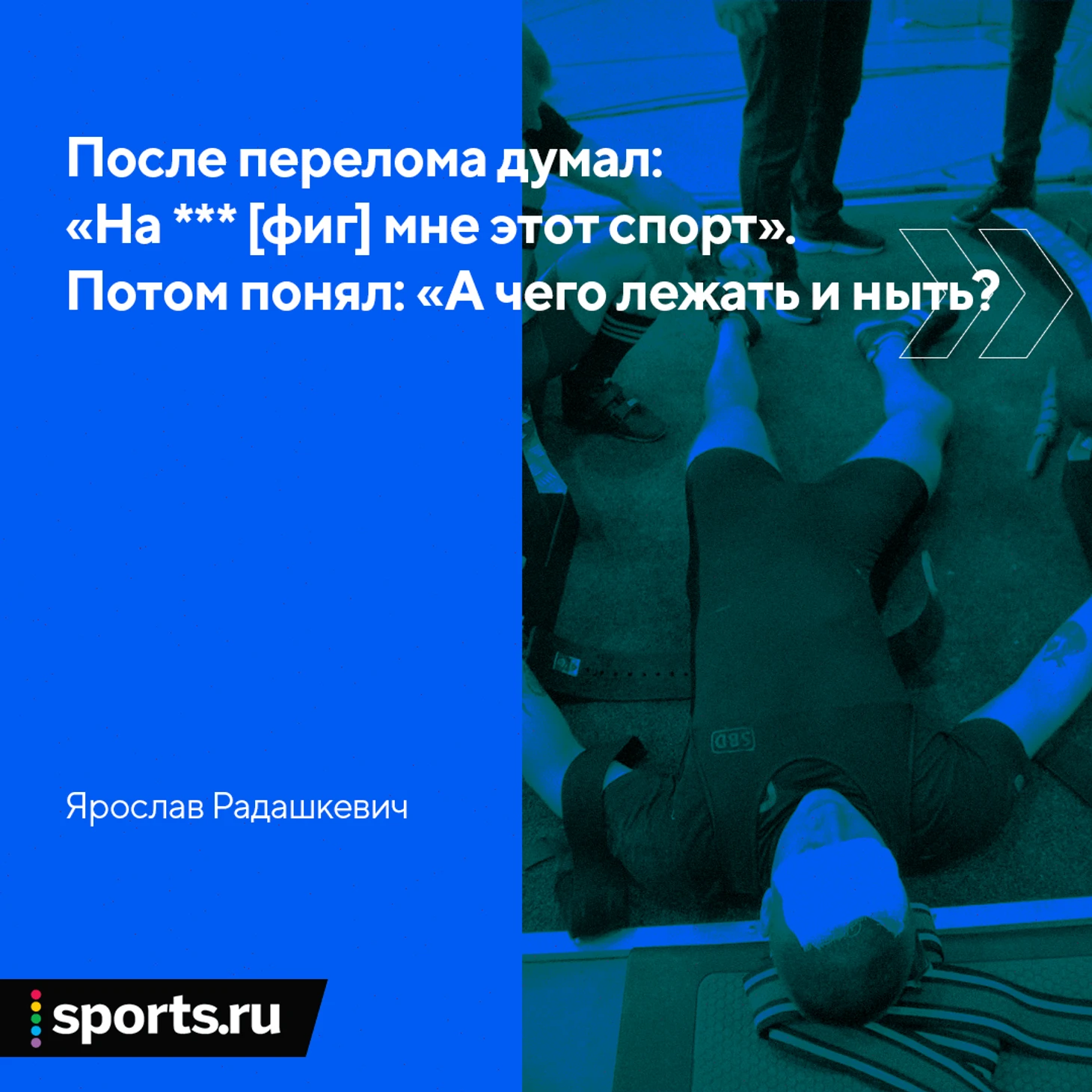 Беднягу зовут Ярослав Радашкевич. Он юниор-рекордсмен России, Европы и мира. Если думаете, что перелом убил карьеру Ярослава, то ошибаетесь: он вернулся в спортзал спустя две недели, а травма помогла многому научиться.
