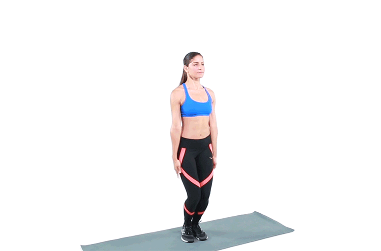 Примите начальную позицию: встаньте прямо, руки опустите, ноги поставьте вместе и слегка согните их в коленных суставах.