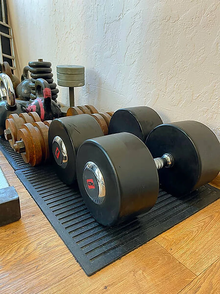 26 марта 2020-го – в первый же день карантина – я поехал смотреть свою первую комнату, она располагалась недалеко от метро «Нарвская». Это был такой своеобразный хостел и в нем – небольшая комната, примерно метров 20-25. В ней я и начал проводить тренировки. Оборудования почти не было: я купил штангу 150 килограммов и скамью для жима лежа, еще – турник и брусья. Были гантели наборные по 12 килограммов, еще пара гантелей по 8 и гиря на 16. Вот и весь инвентарь.