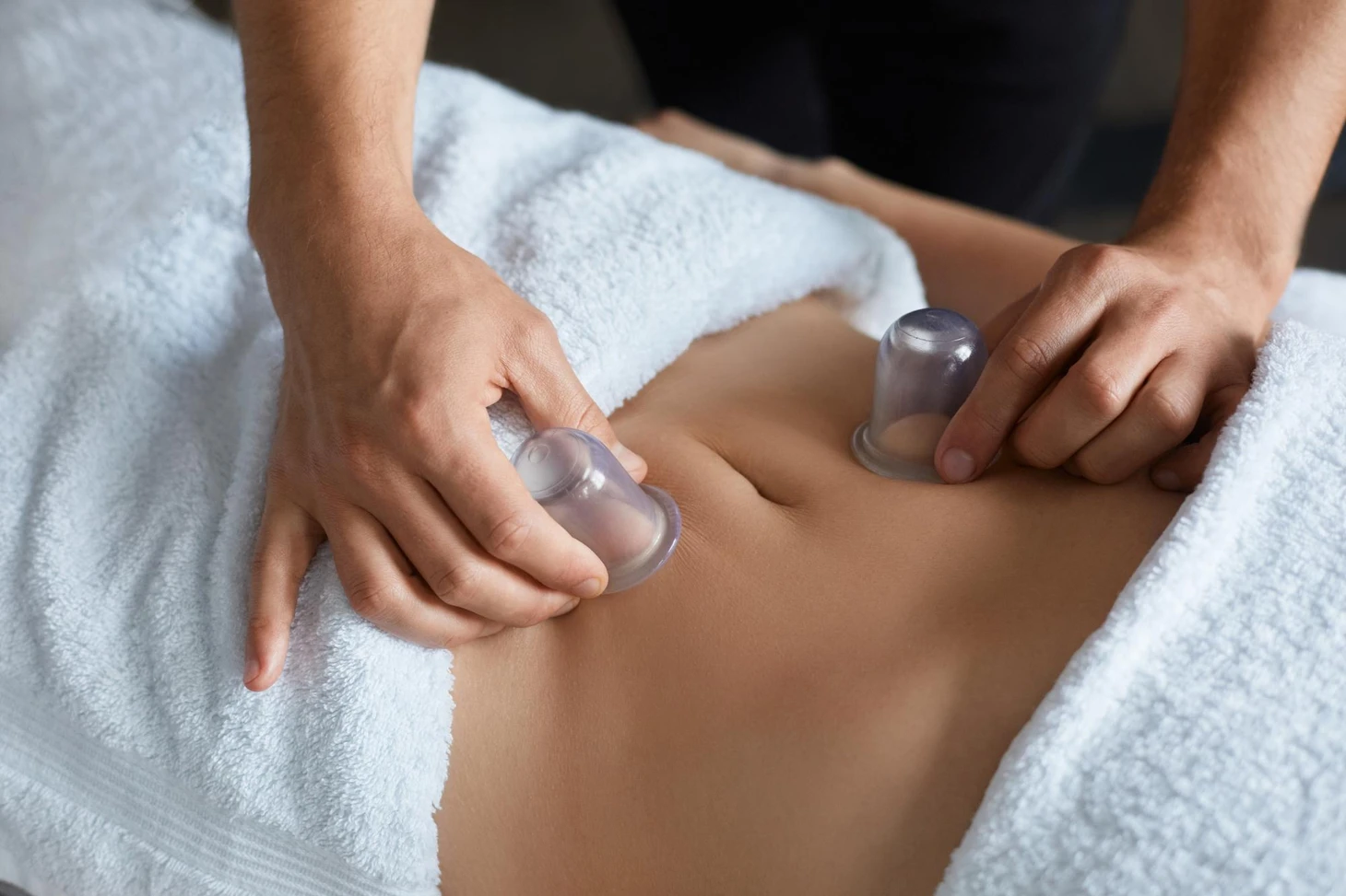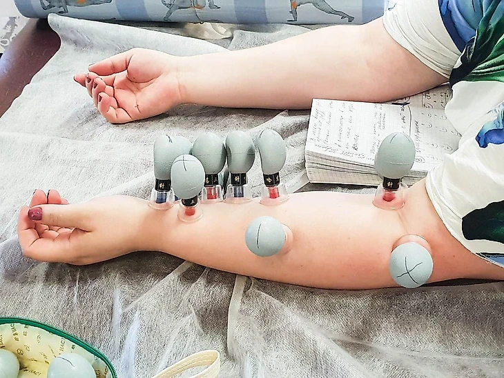 4. Терапия встряхиванием или вращением банок – это движение чашек в статическом положении. Встряхните или поверните чашки из стороны в сторону. Подобная методика эффективна для смягчения шрамов, работы с глубокими мышцами, массажа триггерных точек и миофасциального высвобождения тканей.