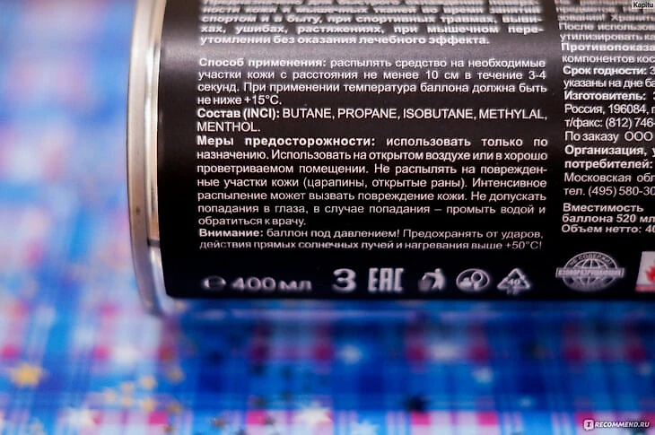Кстати, вопреки расхожему мнению, использовать его на оголенной коже можно, так как нанесение через одежду хоть и позволяет морозить участок чуть дольше, но при этом уменьшает эффективность действия и не гарантирует отсутствие ожога. А вот на открытые раны спрей нельзя применять ни в коем случае. Это приведет лишь к дополнительной травматизации этого участка, но уже химической и температурной. К тому же резко увеличит риск инфицирования раны. Также лучше не использовать спрей на коже лица и головы, так как она гораздо более чувствительна, а слой мягких тканей под ней тоньше, что увеличивает риск ожогов.