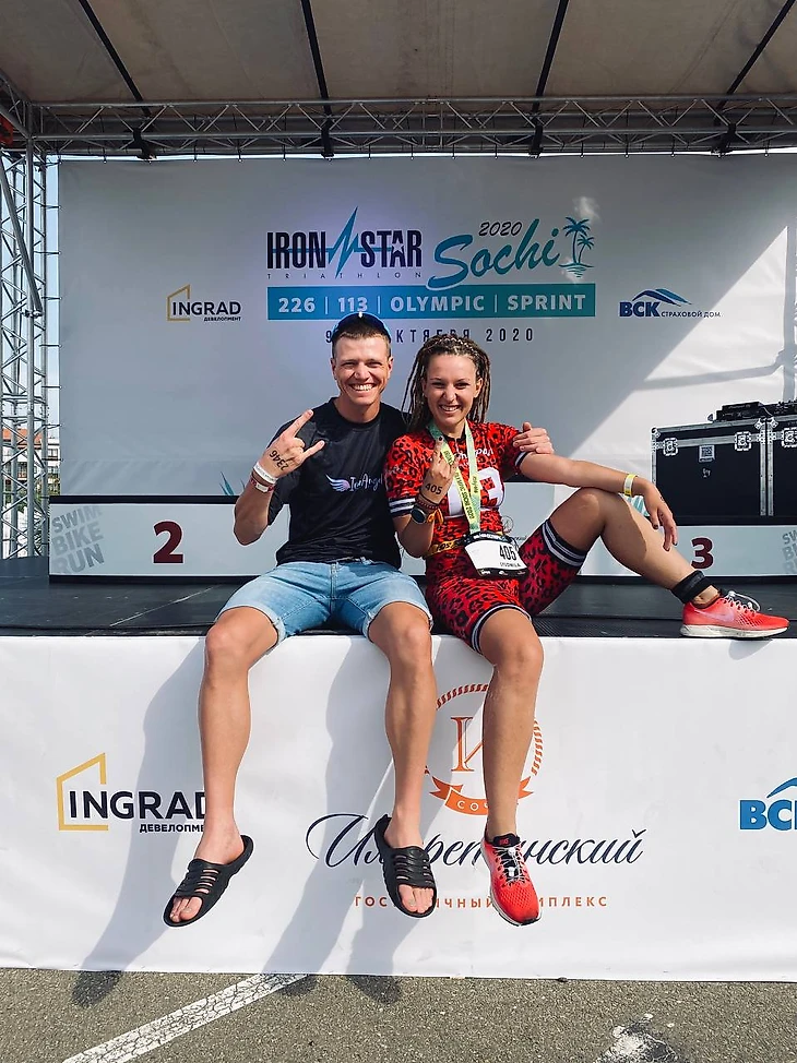 Это была дистанция спринт в Сочи (одна из самых коротких и доступная каждому дистанция в триатлоне, где необходимо проплыть 750 метров, проехать на велосипеде 20 км и далее пробежать 5 км) для меня был десятой гонкой.