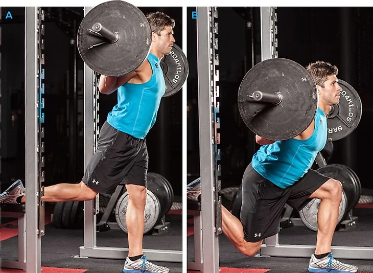 - сплит-присед со штангой или гантелями (на каждую ногу),