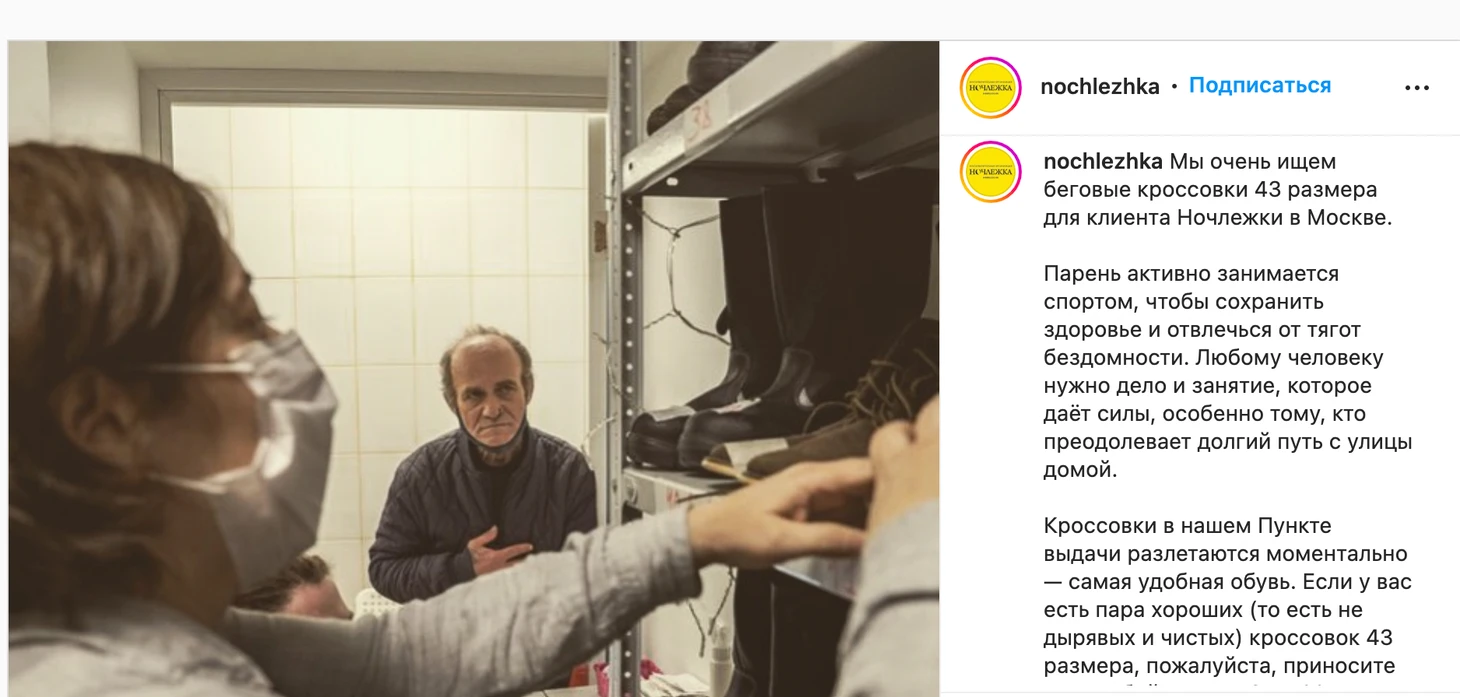 Ночлежка написала об просьбе клиента в своих соцсетях. Новые кроссовки нужного размера нашлись за пару дней.