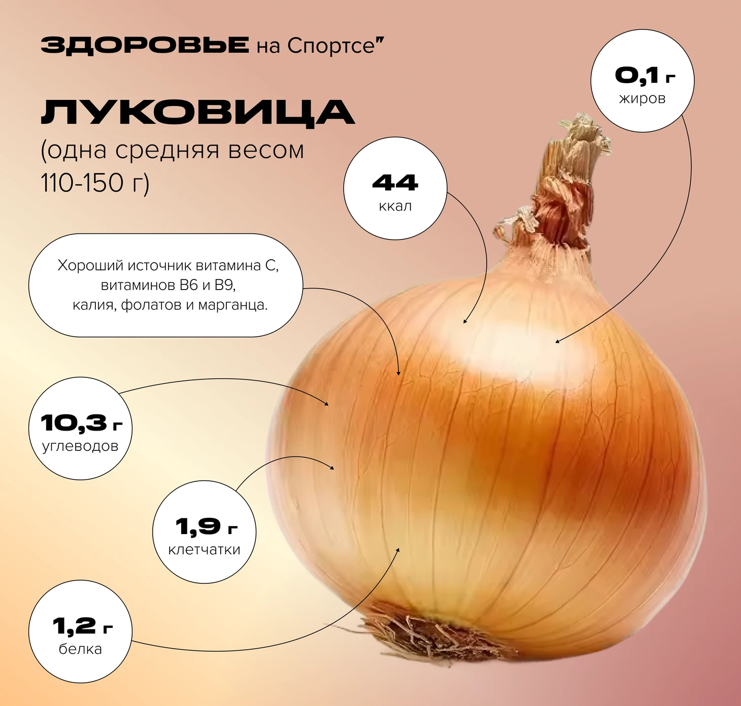 Лук – хороший источник витамина C, витаминов B6 и B9, калия, фолатов и марганца. Более того, на 90% он состоит из воды.