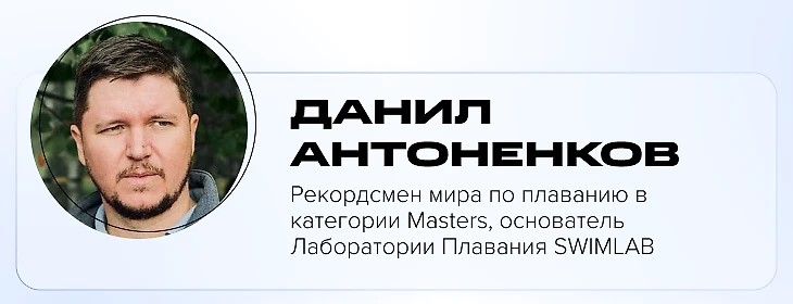 Поможет нам в этом Данил Антоненков, рекордсмен мира, двукратный рекордсмен Европы и многократный рекордсмен России по плаванию в категории Masters, основатель Лаборатории Плавания SWIMLAB.