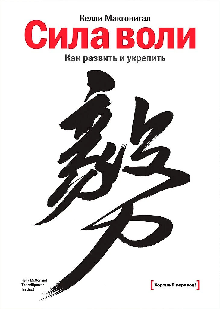 По мнению доктора философии в области психологии и профессора Стэнфордского университета Келли Макгонигал, сила воли – это не что-то врожденное, она больше похожа на мускул, который можно тренировать. Автор предлагает десять стратегий, которые помогут развить силу воли и достичь за счет этого всех поставленных целей. В основе подхода – медитации и другие практики самопознания, которые полезны, например, при попытках отказаться от вредных привычек или перестать все откладывать на потом. Книга, написанная в 2012 году, почти сразу после выхода стала бестселлером и пользуется большой популярностью до сих пор.