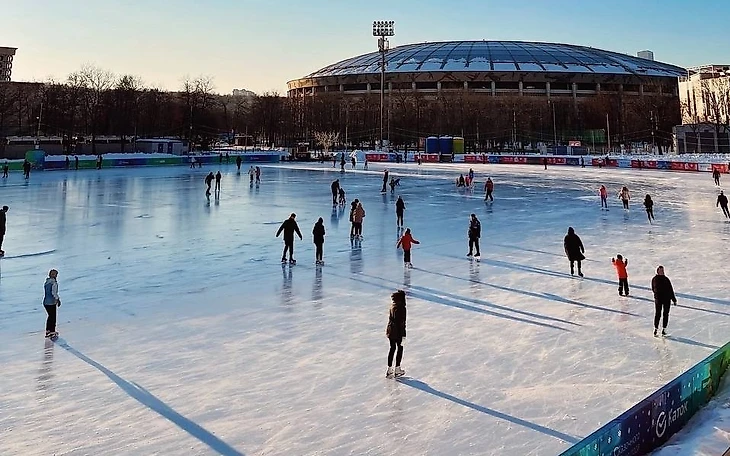 Каток в олимпийском комплексе «Лужники» имеет площадь льда в 16 тысяч квадратных метров. Он функционирует в течение всего зимнего сезона с конца ноября по март.
