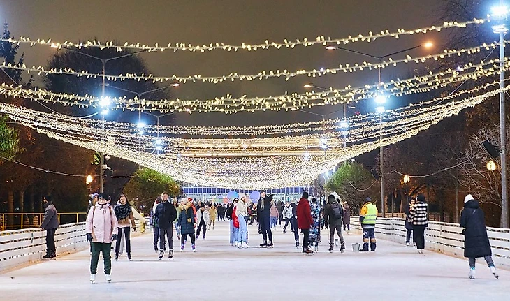 Бесплатный каток, расположенный в центральной части парка 50-летия, имеет систему искусственного охлаждения, поэтому может работать даже при плюсовых температурах. Площадь катка составляет 1 800 квадратных метров.