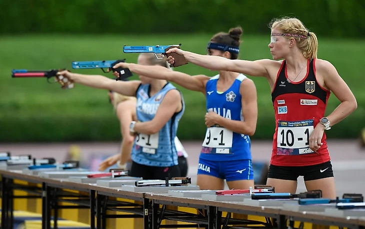 В 2010-х годах на соревнованиях стали применяться лазерные пистолеты, которые в сочетании с неподвижными мишенями (в 90-х мишени еще двигались) сформировали текущий вид современного пятиборья.