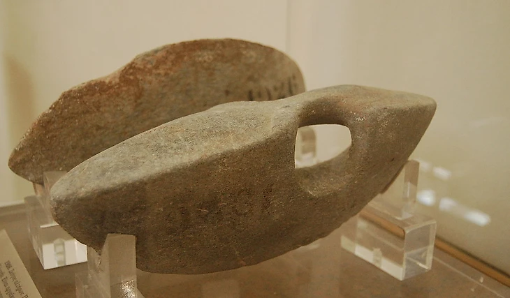 Они изготавливались из камня или металла и были оснащены специальными отверстиями для хвата. Спортсмен брал в руки гантели и делал с места пять прыжков, что по технике напоминало современный тройной прыжок, где атлет прыгает с ноги на ногу. В качестве результата засчитывалась точка приземления после последнего пятого прыжка.