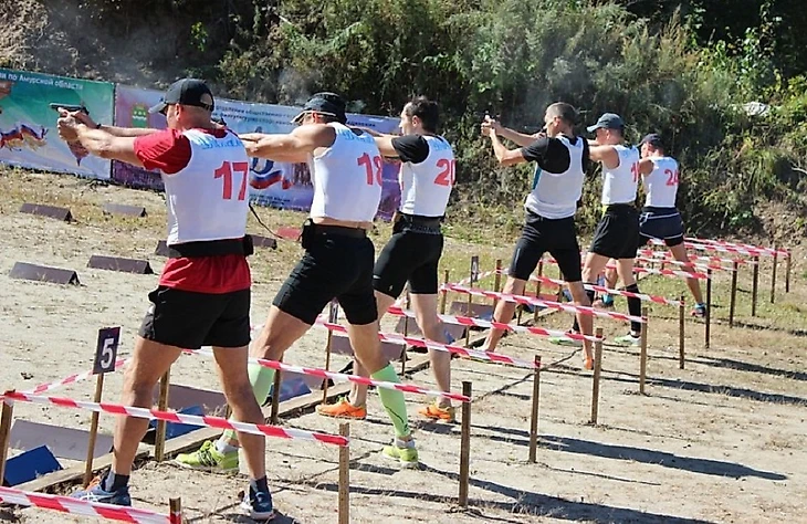 Завершающий вид соревнований – комбайн, в ходе которого спортсмены преодолевают бегом четыре круга по 800 метров и четыре огневых рубежа (обычно используется лазерный пистолет и электронные мишени).