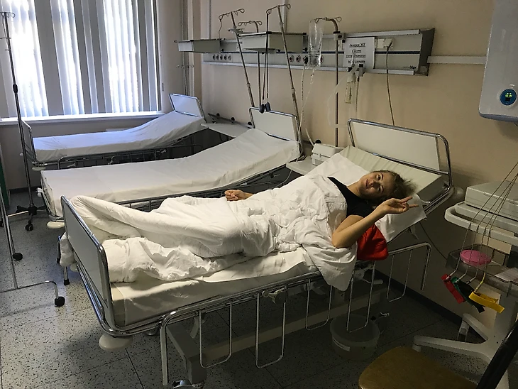Проснулась голая под тонкой простынкой в реанимации, вокруг люди, которым повезло ещё меньше, кто- то даже на ИВЛ. Жуткий голод, отсутствие телефона, пациенты все в трубочках, которые лишь стонут или издают страшные булькающие звуки.