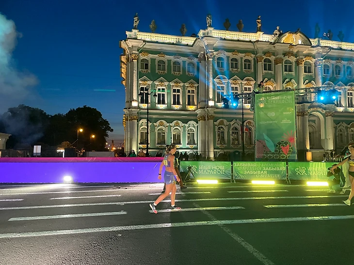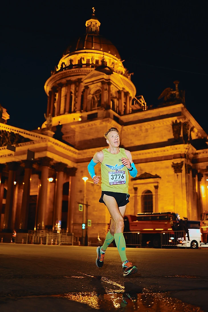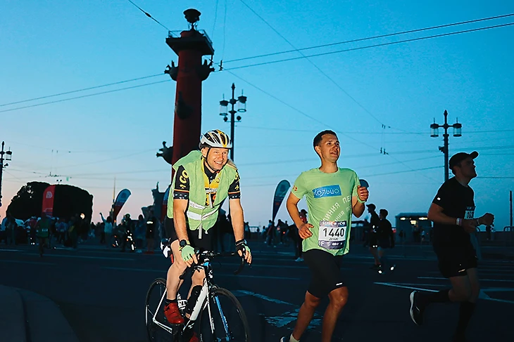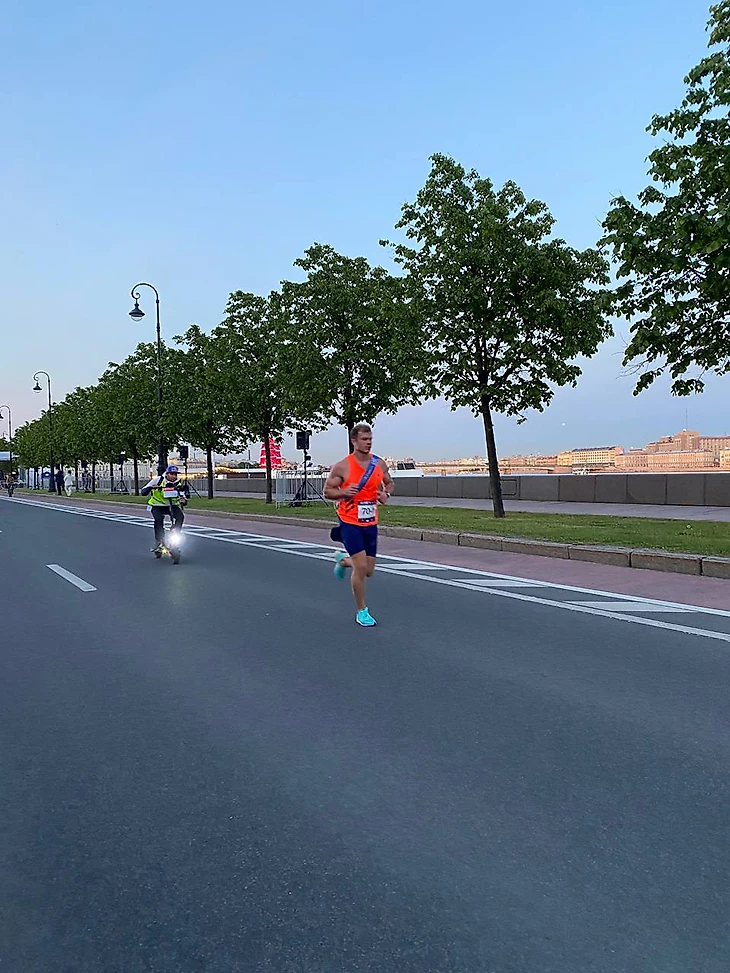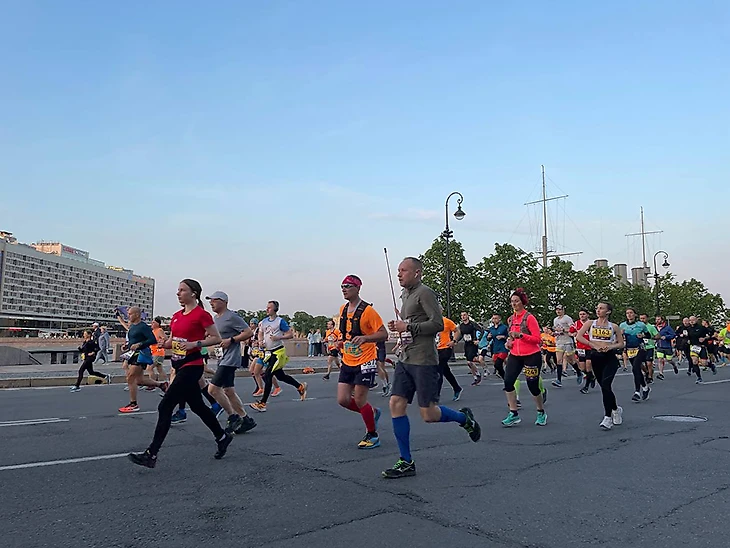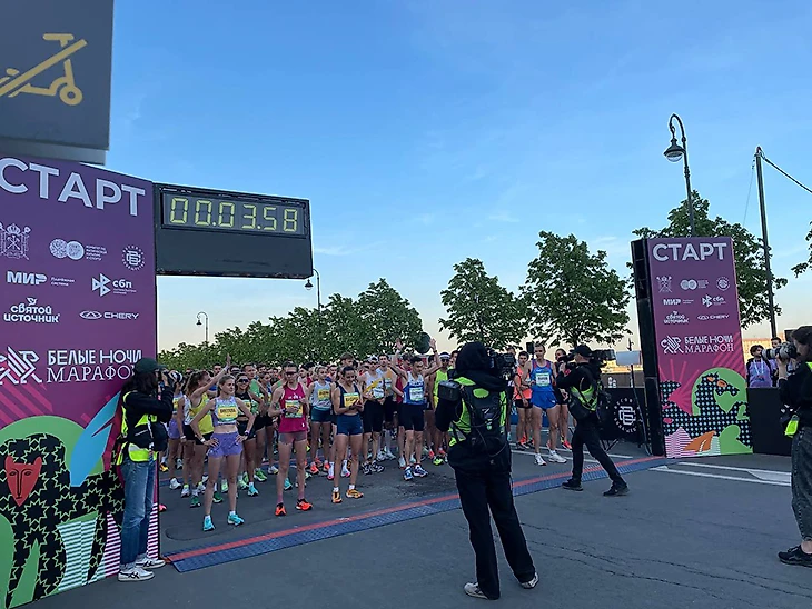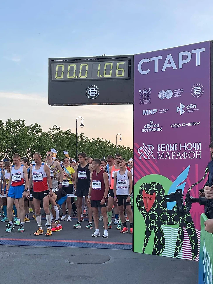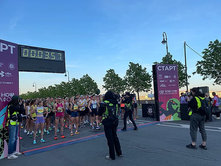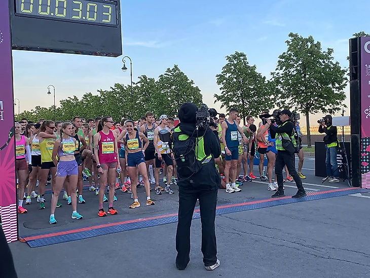 В Питере «Белые ночи» – крупнейший марафон города и, возможно, лучший по атмосфере марафон в стране. Забег на 10 км стартовал в 21:00, вечером 11 июня, старт марафона (42,2 км) – в 22:00. Завершится забег почти в 4 утра, когда добегут последние финишеры. Мы вещаем со старта примерно до часу ночи, комментирует Артур Бурцев – член сборной команды Санкт-Петербург, выигрывавший забег «Пушкин – Санкт-Петербург» и десятку на «Белых ночах».