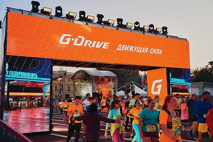 А сеть АЗС «Газпромнефть» делает крутую акцию и заправляет высокотехнологичным топливом G-Drive всю технику организаторов марафона.