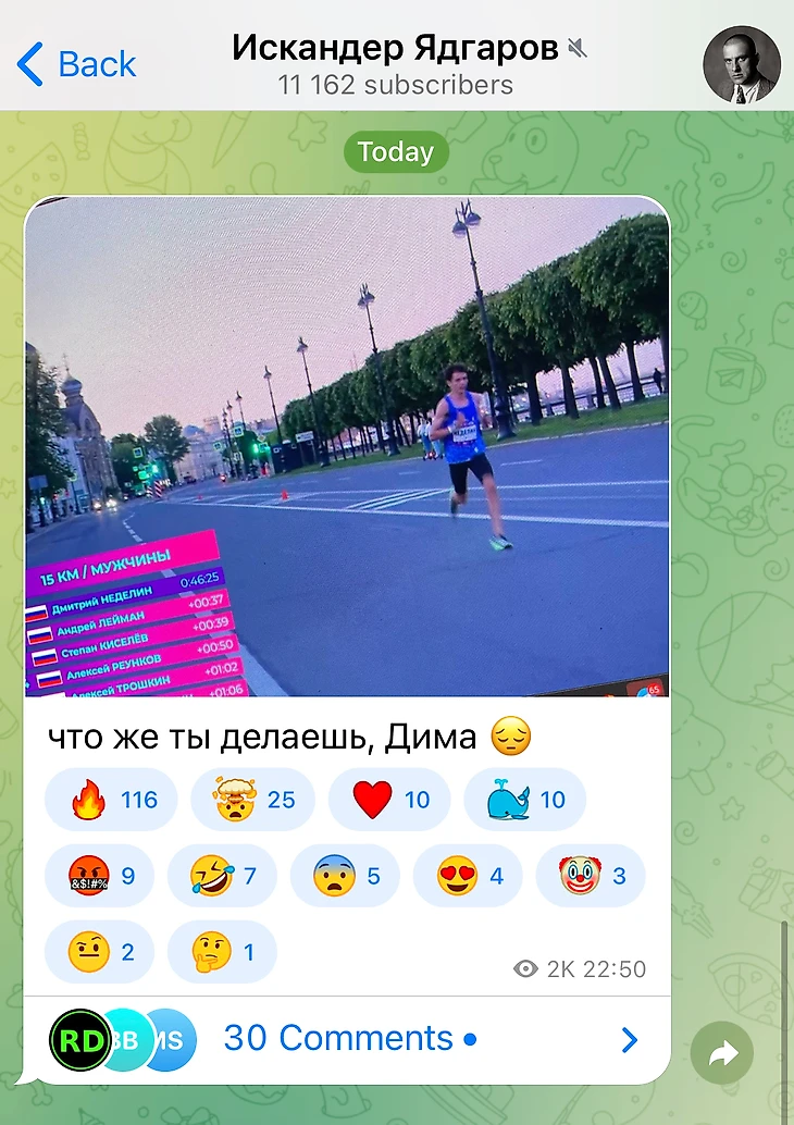 Марафон вышел прекрасным. Луиза, вот это характер! Вот это сила! Ожидал от нее, что она будет навязывать борьбу, но то, что она так уверенно выйдет и будет убегать в отрыв – нет. Браво и поклон! 😍 Марина Ковалева занимает второе место. Не знаю, что пошло не так, но второе место это тоже неплохо! Дина сегодня громко заявила о себе, заняв третье место в одном из самых престижных марафонов России. Поздравляю ее с первым марафоном. Уверен, ее ждет хорошее спортивное будущее!