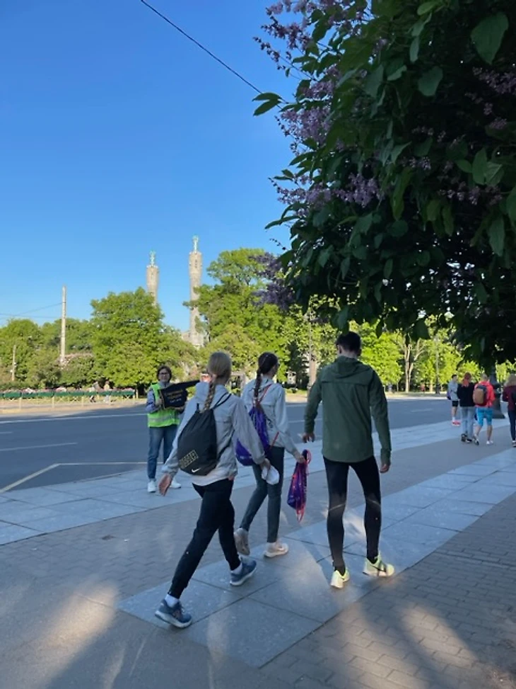 Пока Артур разминается, давайте посмотрим, как к забегу готовятся другие спортсмены. Весь город живет спортом! Как же круто!