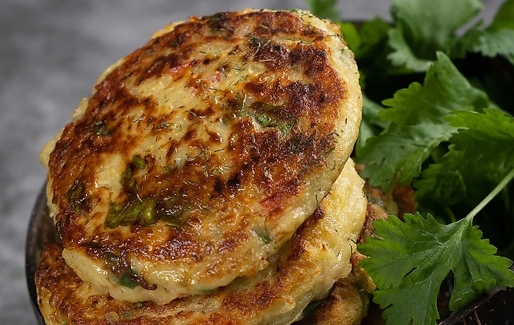 Все ингредиенты необходимо смешать, а затем сформировать из полученной массы лепешки. Нагреть небольшое количество оливкового масла на сковороде при среднем огне. Слегка обжарить оладьи по две минуты с каждой стороны до появления золотисто-коричневой корочки.