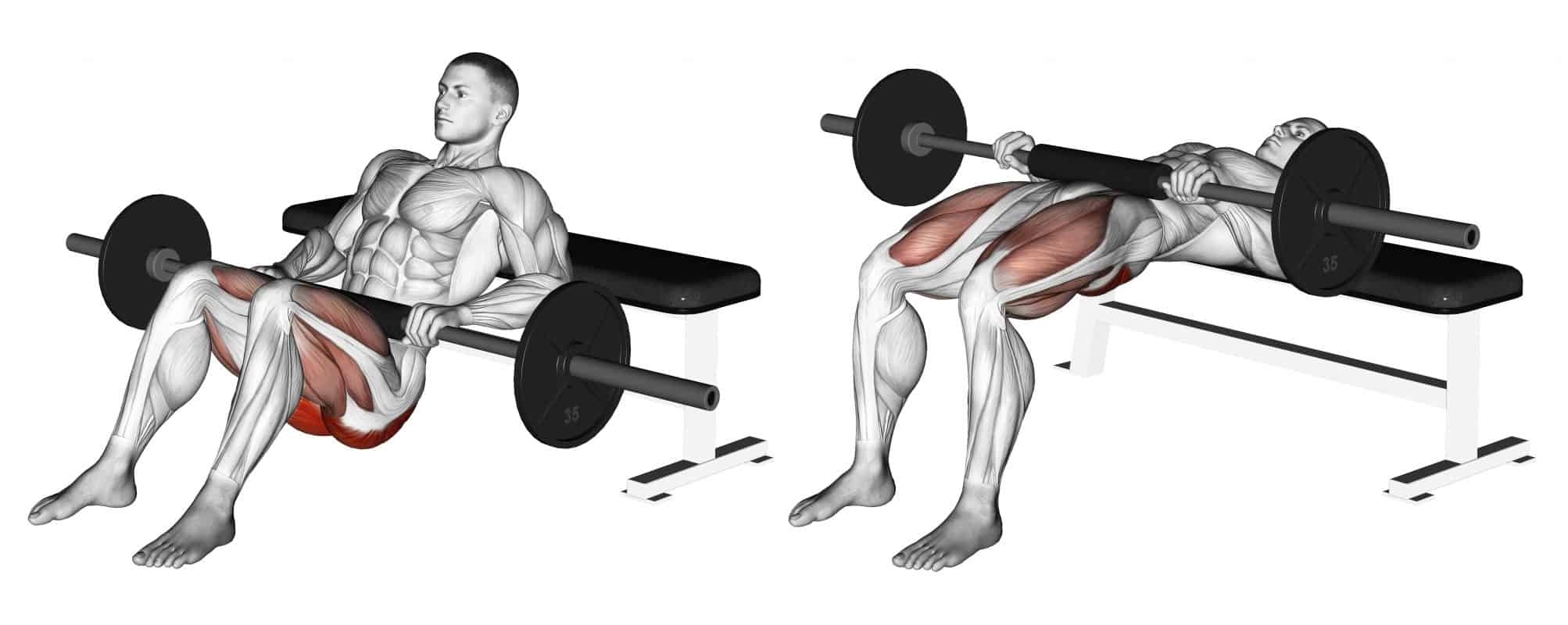 Как понятно из названия упражнения, основная работающая мышца это большая ягодичная, на втором месте стоят мышцы переда и зада бедер, затем мышцы кора и даже икроножные мышцы.