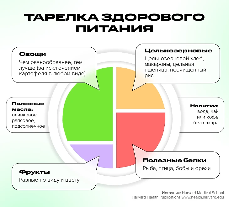 «Гарвардская тарелка» при соблюдении всех рекомендаций обеспечивает здоровое и сбалансированное питание. Однако, людям с заболеваниями ЖКТ стоит согласовывать методы питания с лечащим врачом.