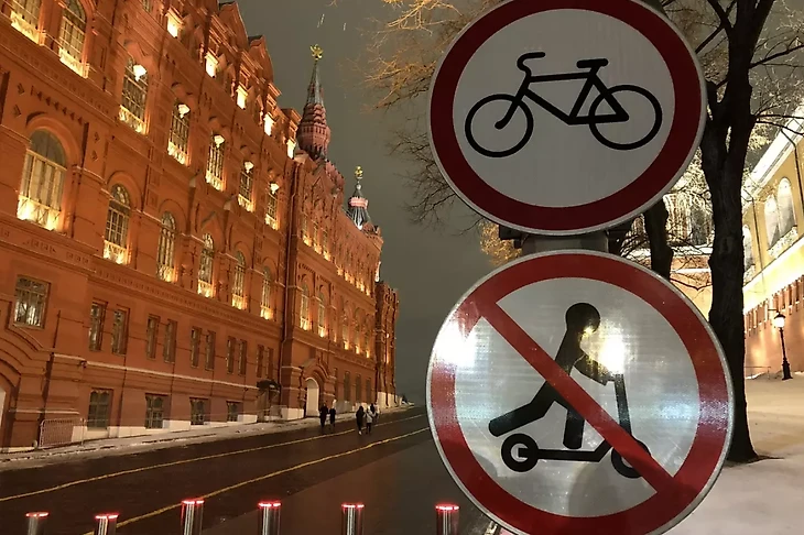 В Москве первые знаки установили еще в марте – на Красной и Манежной площадях. Также в столице движение СИМ запрещено на территории Музея-заповедника «Коломенское» и «Измайлово», в парке «Зарядье», на территории Кремля и прилегающих зон (Охотный ряд, ГУМ, Никольский пассаж), в саду «Эрмитаж» и на некоторых улицах.