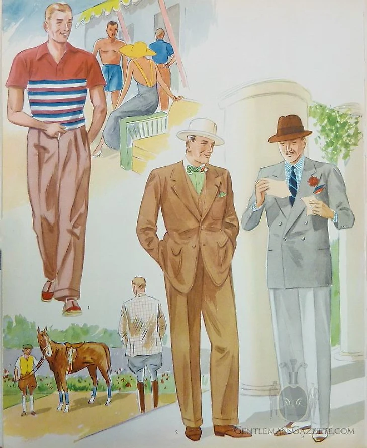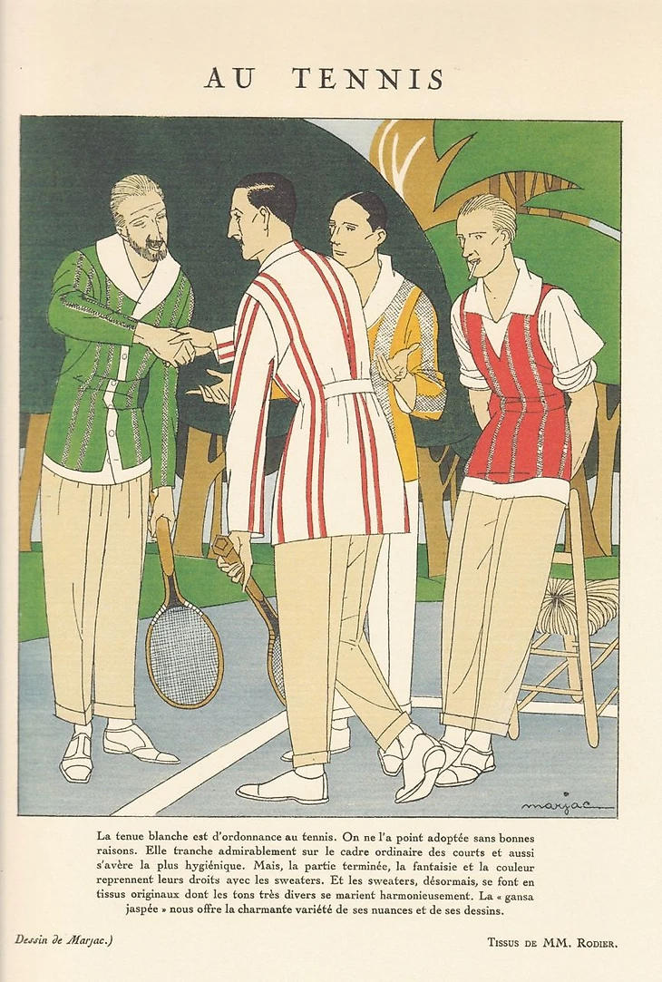 P.S. И просто так — еще немного о теме теннисных мод. Ниже иллюстрации из Apparel Arts, а последняя из журнала Monsieur. Интересно, что, например, белые фланелевые брюки, из мира спорта ушли, а в моде остались и до сих пор tres chic.