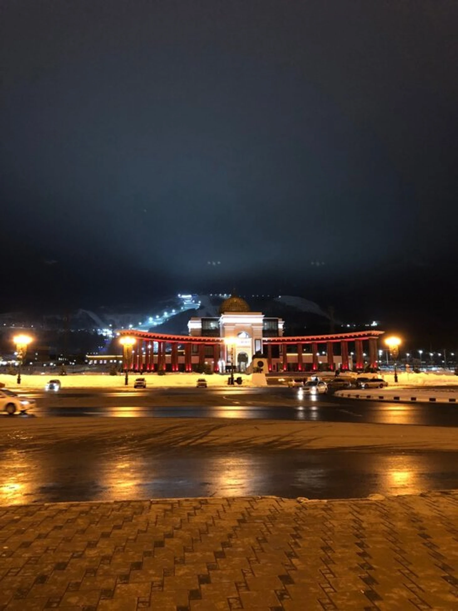 Посетил горнолыжный курорт «Горный воздух», расположенный в центре Южно-Сахалинска, – один из самых популярных зимних курортов нашей страны. На горных лыжах не катался. Поднялся на двух подъемниках на самый верх склона, с которого город виден, как на ладони. Даже можно разглядеть побережье Охотского моря. На вершине горы стоит указатель с направлением и расстоянием до некоторых городов России: Москва 9337 км, Хабаровск 913 км, Калининград 10406 км, Санкт-Петербург 9772 км. Впечатляет!
