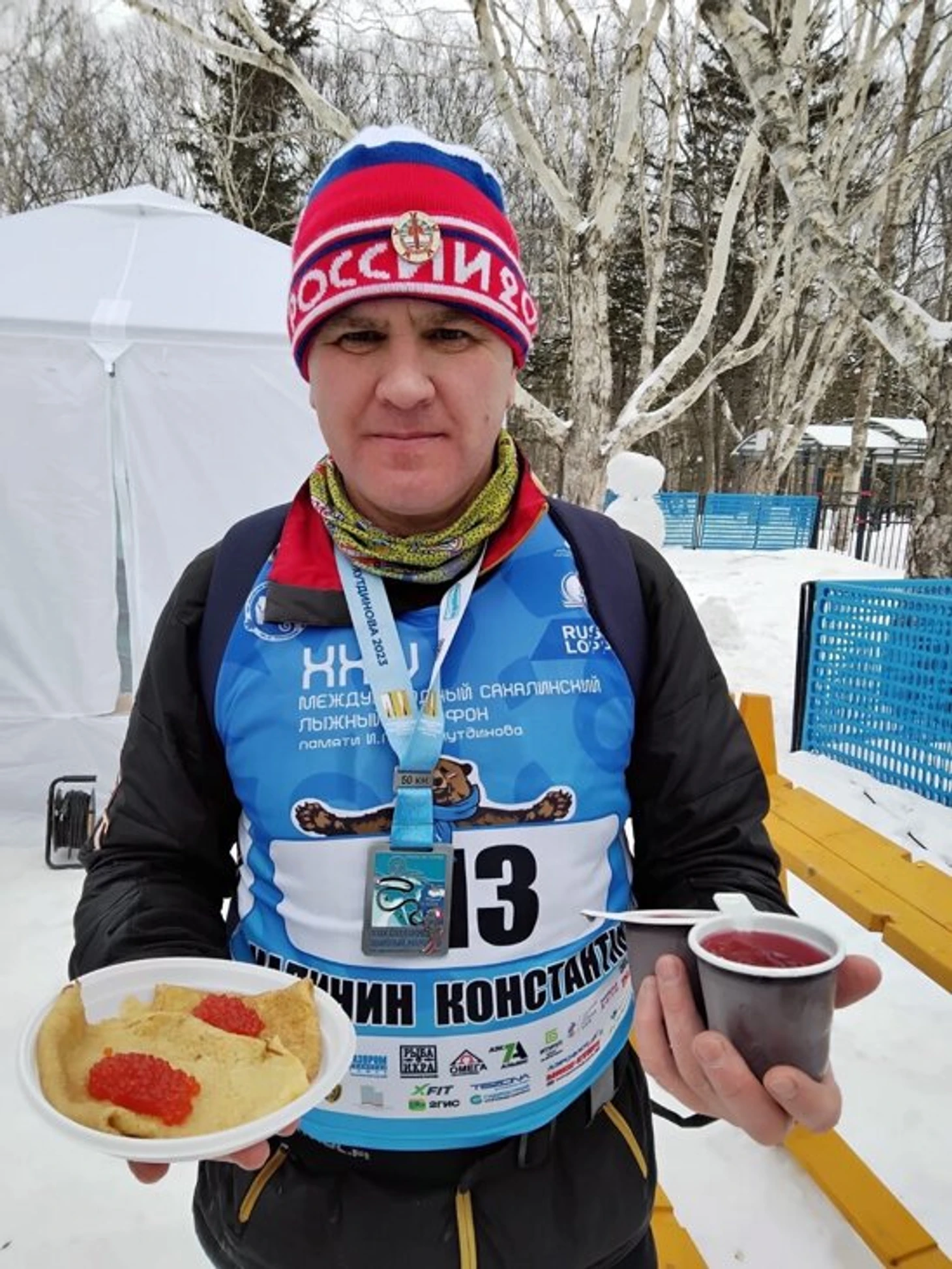 На финише всех ждет великолепная медаль финишера, на которой можно сделать гравировку личного результата. Приятная девчонка поставит отметку в паспорте Russialoppet. Ну и конечно превосходный обед – вкуснейшая уха из красной рыбы, бутерброды с красной икрой и традиционный сахалинский чай со сладостями.