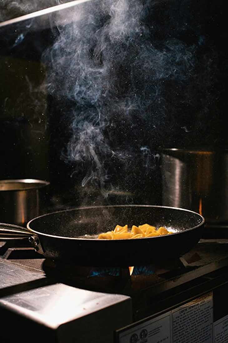 Если нагреть сковороду до 300°C, начинает выделяться токсичная ПФОК. Причем сделать это не так сложно, достаточно поставить сковороду на плиту при максимальной мощности примерно на 8 минут. Однако в обычной жизни люди редко так поступают, потому что при такой температуре любое пищевое масло начнет неприятно дымить.