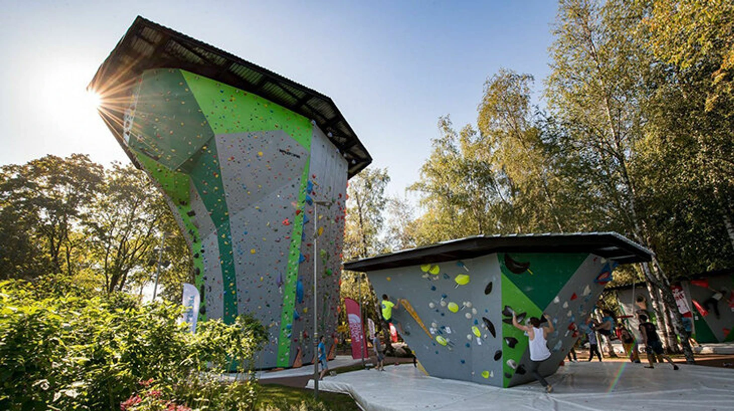 Зоны: трудность (лазание со страховкой), боулдеринг, скорость (эталонная трасса для лазания на скорость)