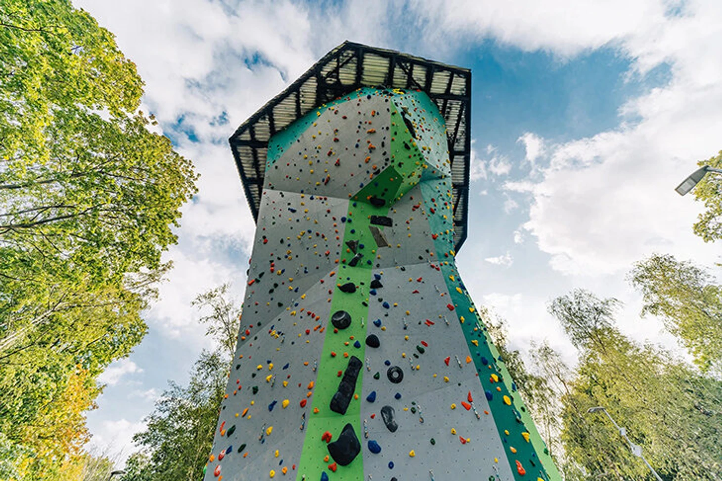 Bigwall Sport – это самый большой московский скалодром в Москве на открытом воздухе. В летний сезон можно сполна насладиться пролазами. В солнечный день деревья отбрасывают приятную тень, а по вечерам романтично сверкают огни подсветки Лужников..