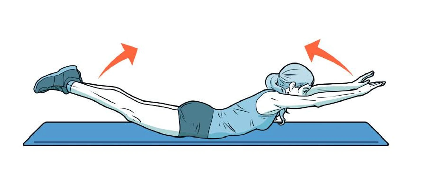 Если слишком тяжело поднимать и руки, и ноги, воспользуйтесь облегченной версией – одновременно отрывайте от пола правую руку и левую ногу, опускайте их и повторяйте движение с левой рукой и правой ногой.