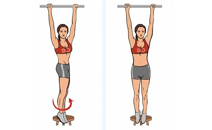 Оторвите ноги от пола и находитесь в висе столько, сколько это возможно.
