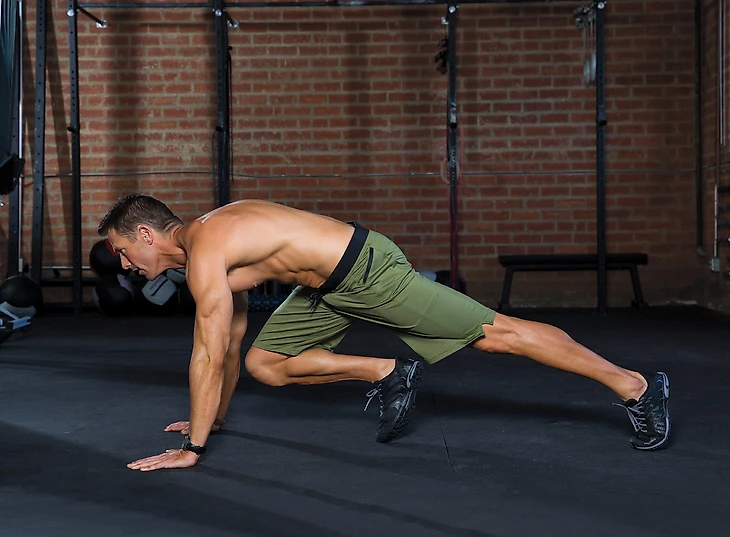 Встаньте в планку, опирайтесь на ладони. Тело при этом должно быть напряжено. Находясь в такой позиции, медленно подтягивайте колено к груди, носок при этом не касается пола. Зафиксируйте ногу в таком положении на несколько секунд и верните ее назад. Затем повторите такую же манипуляцию с другой ногой. По мере того, как упражнение будет казаться вам проще, увеличивайте скорость выполнения.