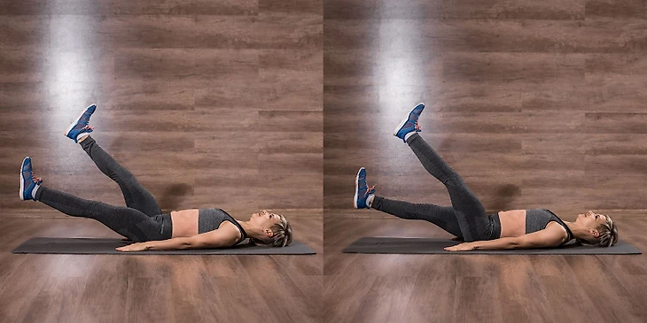 Ложитесь на спину и займите удобное положение, руки расположите под головой. Поднимите ноги и согните их в коленях под прямым углом. Делайте движения, как будто вы едете на велосипеде, чередуя сгибание и разгибание ног. Сфокусируйтесь на напряжении в нижнем прессе, стараясь удерживать ноги на расстоянии от пола.