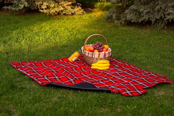 Лёгкий и практичный плед подходит для отдыха на природе. Он изготовлен из водоотталкивающего материала, легко сворачивается и не занимает много места. Плед отлично защищает от влажной травы и песка.