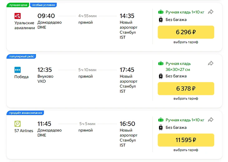 Прямые рейсы в Стамбул из России доступны из 15 городов России, включая: