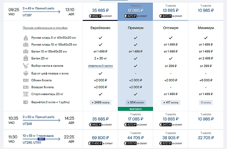 Услуга по покупке дополнительного места предоставляется и для транспортировки животных. При этом есть ограничение по весу контейнера с питомцем не более 15 кг и габаритов 50х40х40 см для Бизнес класса и 50х35х32 см для Комфорта и Эконома.