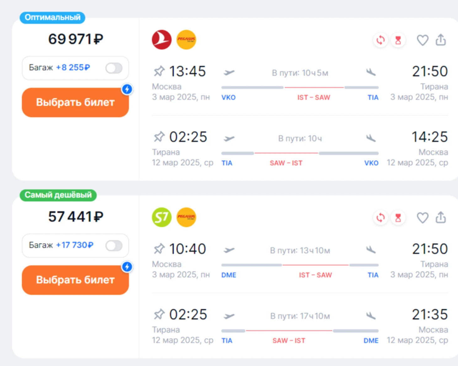 На данный момент все прямые рейсы из России в Албанию закрыты. Попасть в Тирану, столицу Албании, можно с пересадкой через Стамбул. Путешественникам из Москвы потребуется от 10 до 17 часов на перелет с пересадкой.