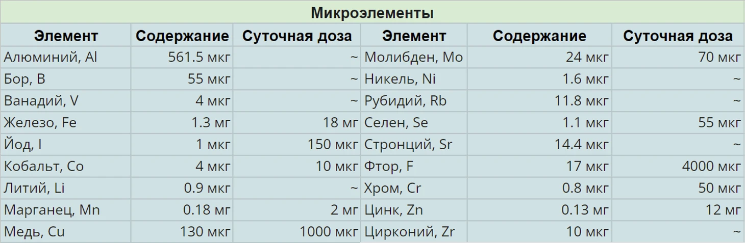 Содержание витамина A относительно небольшое при указанной норме, зато витамина C больше в 2,2 раза по сравнению с суточной нормой. Он является краеугольным камнем иммунитета человека.