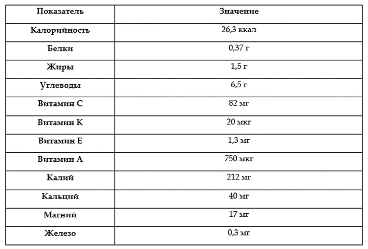 Давайте посмотрим, какие вещества есть в этой популярной ягоде. Все данные представлены в таблице ниже.