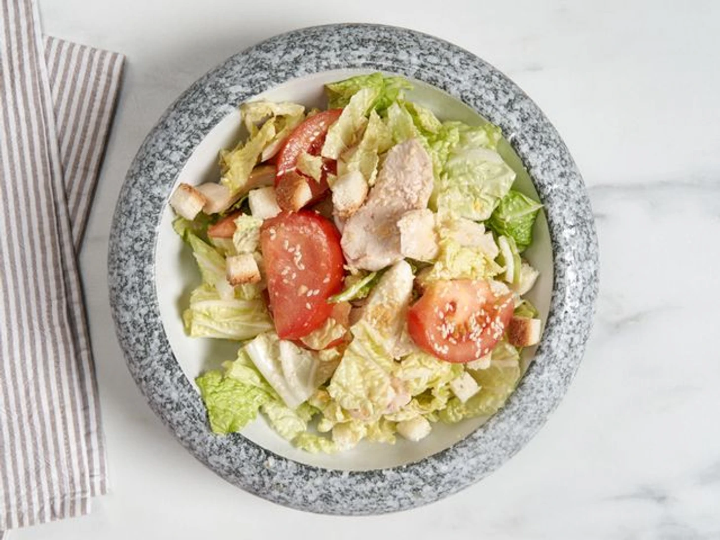 Перед подачей можно посыпать салат сухариками для хрустящей текстуры.