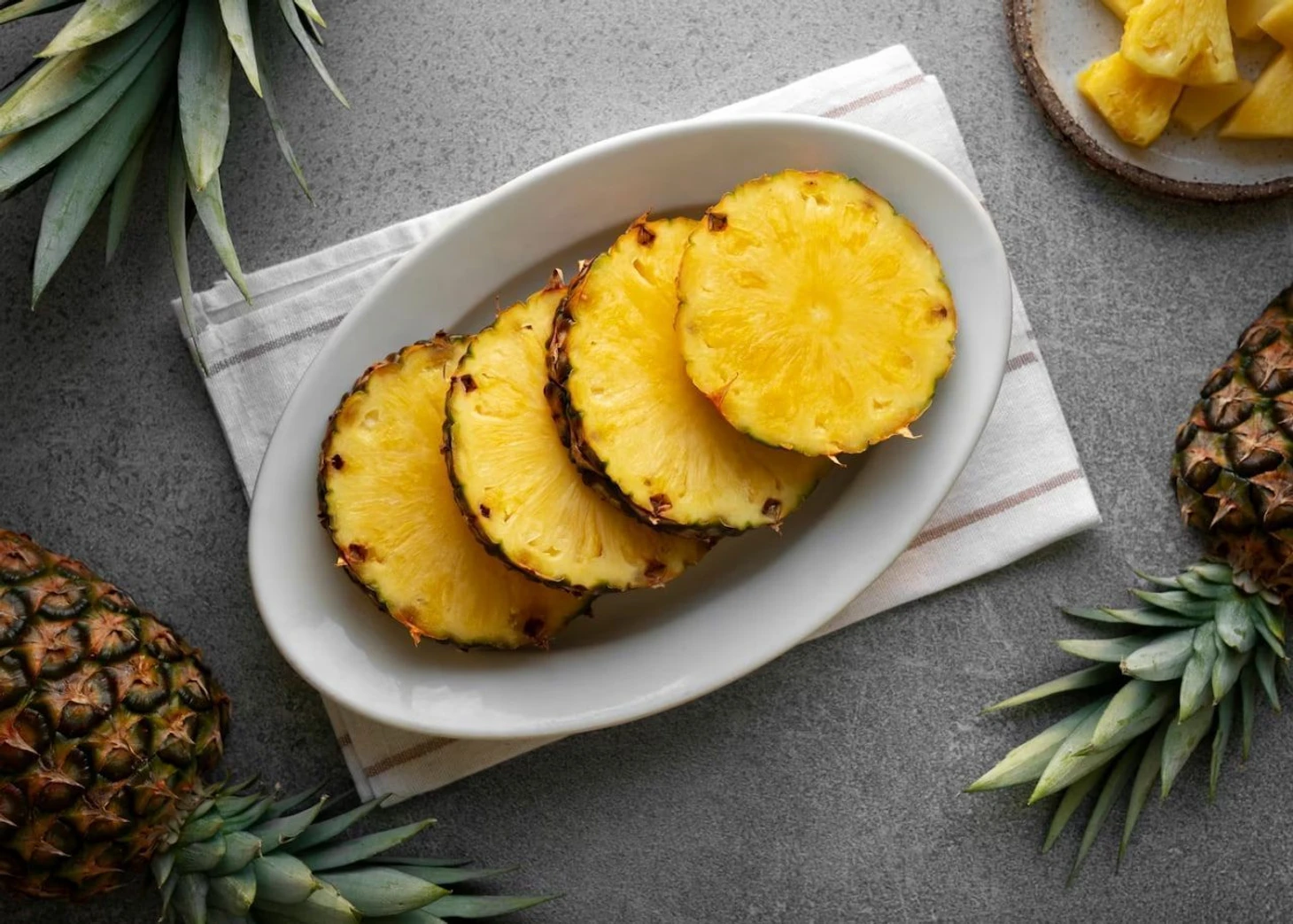 - Ананас – низкокалорийный продукт с высоким содержанием воды и клетчатки, что делает его отличным выбором для тех, кто стремится похудеть. Клетчатка помогает дольше ощущать сытость, снижает аппетит и улучшает пищеварение. Включение ананаса в рацион может способствовать эффективному контролю веса и улучшению обмена веществ.
