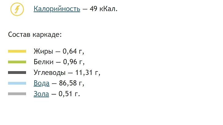 В таблице указано БЖУ и калорийность из расчета на 100 грамм продукта.