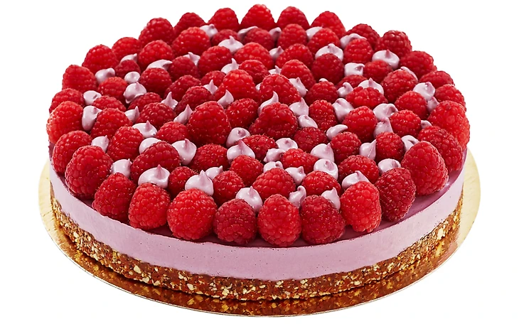 В это время приготовьте начинку: смешайте 500 граммов сливочного сыра, 200 граммов сметаны, 150 граммов сахара, 200 граммов измельченной малины, 3 яйца, 2 столовые ложки муки до однородности. Вылейте начинку на основу и выпекайте при 160 градусах в течение 50 минут. Остывший чизкейк украсьте свежей малиной и листиками мяты перед подачей.