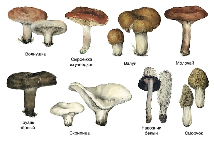 Состав разных грибов представлен в таблице ниже.