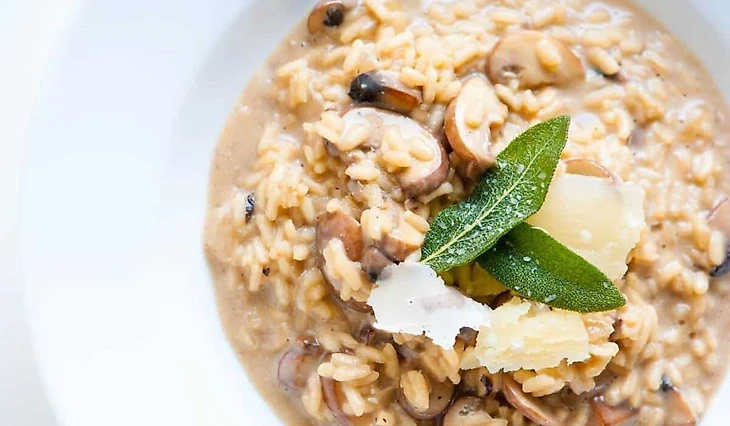 Обжарьте мелко нарезанный лук в оливковом масле, добавьте рис арборио и обжаривайте его до прозрачности. Постепенно вливайте горячий грибной бульон, постоянно помешивая, пока рис не станет кремообразным. В это время обжарьте нарезанные белые грибы отдельно. Соедините рис и грибы, добавьте тертый пармезан, сливочное масло и свежемолотый черный перец. Это блюдо покорит вас своим нежным вкусом и ароматом.
